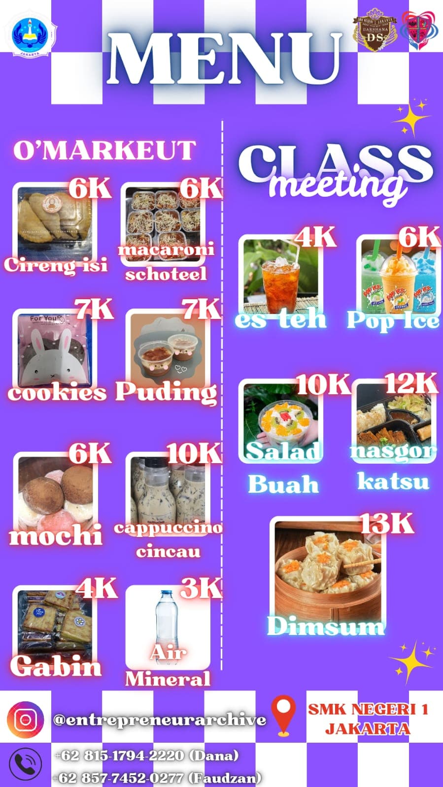 MingguanEntrepreneur Archive bertujuan untuk mendokumentasikan setiap kegiatan kewirausahaan yang dilakukan setiap minggu, yang kemudian diunggah ke sosial media Kewirausahaan OSIS SMK Negeri 1 Jakarta. Program ini dirancang untuk mencatat, mengelola, dan memantau kegiatan usaha yang dilakukan, sebagai dasar untuk pengambilan keputusan.